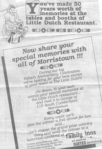 The renowned Little Dutch Restaurant in Morristown, Tennessee was celebrating its Fiftieth Aniversary in 1989.
