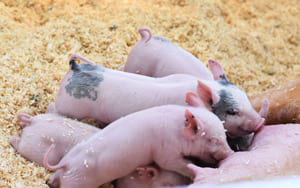 his appearance. I had brought my torn-up sheets with me, so I quickly dried him off and attached him to a place of nourishment. He responded very quickly. I glanced over at the other farrowing pen and lo! and behold! – that delivery had started.
